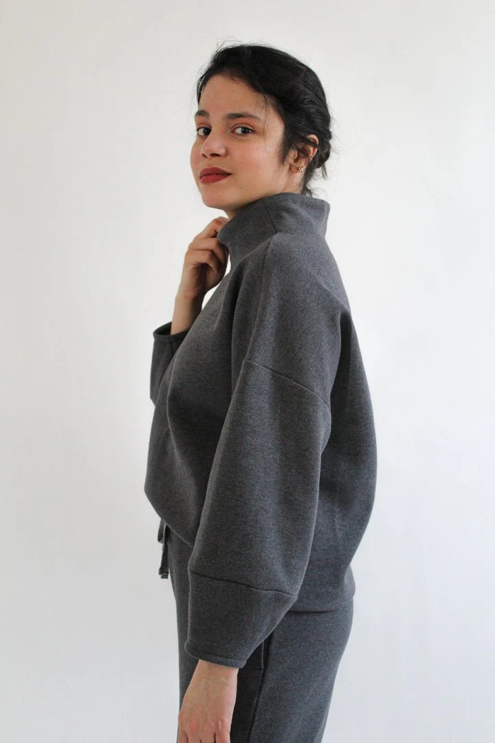 Buy the Apollo Jumper sewing pattern from Bella Loves Patterns. Apollo is a comfy sweatshirt designed to be made in a heavyweight knit. With a modern oversized casual fit, Apollo is perfect to pair with your favourite jeans or joggers. It features drop shoulders, a high neck and bracelet length sleeves with tapered cuffs.