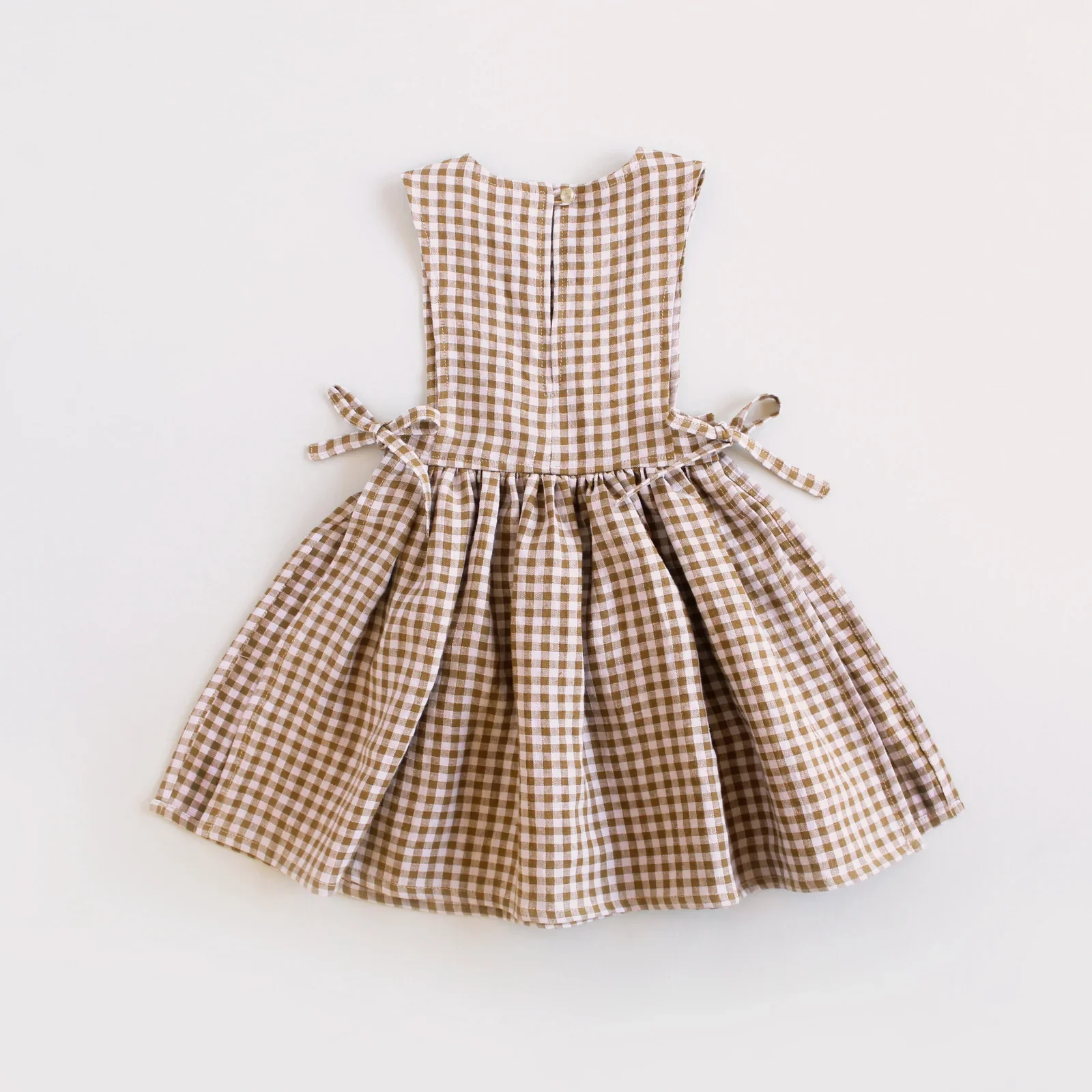 Buy the Baby/Child Lily of the Valley Pinafore sewing pattern from Oh Me Oh My Sewing. This classic pinafore features a bib bodice with optional ruffles, full gathered skirt, and cute keyhole closure at the back. Views A and B have elastic at the sides for a comfy fit. Views C and D are open at the sides with tie closures.