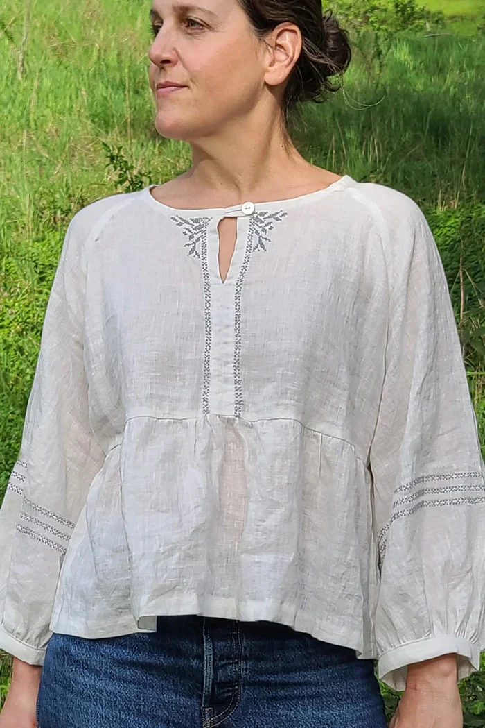 Buy the Cross Stitching for Garments pattern from Sew House Seven. This cross stitch pattern is a collaboration between Junebug and Darlin and Sew House Seven. The pattern was designed for the Romey Gathered Dress and Top but works with the Remy Raglan Top too. The beginner-friendly instructions will walk you through how to add cross stitch embellishment along the centre front of your garment and/or to the sleeves.