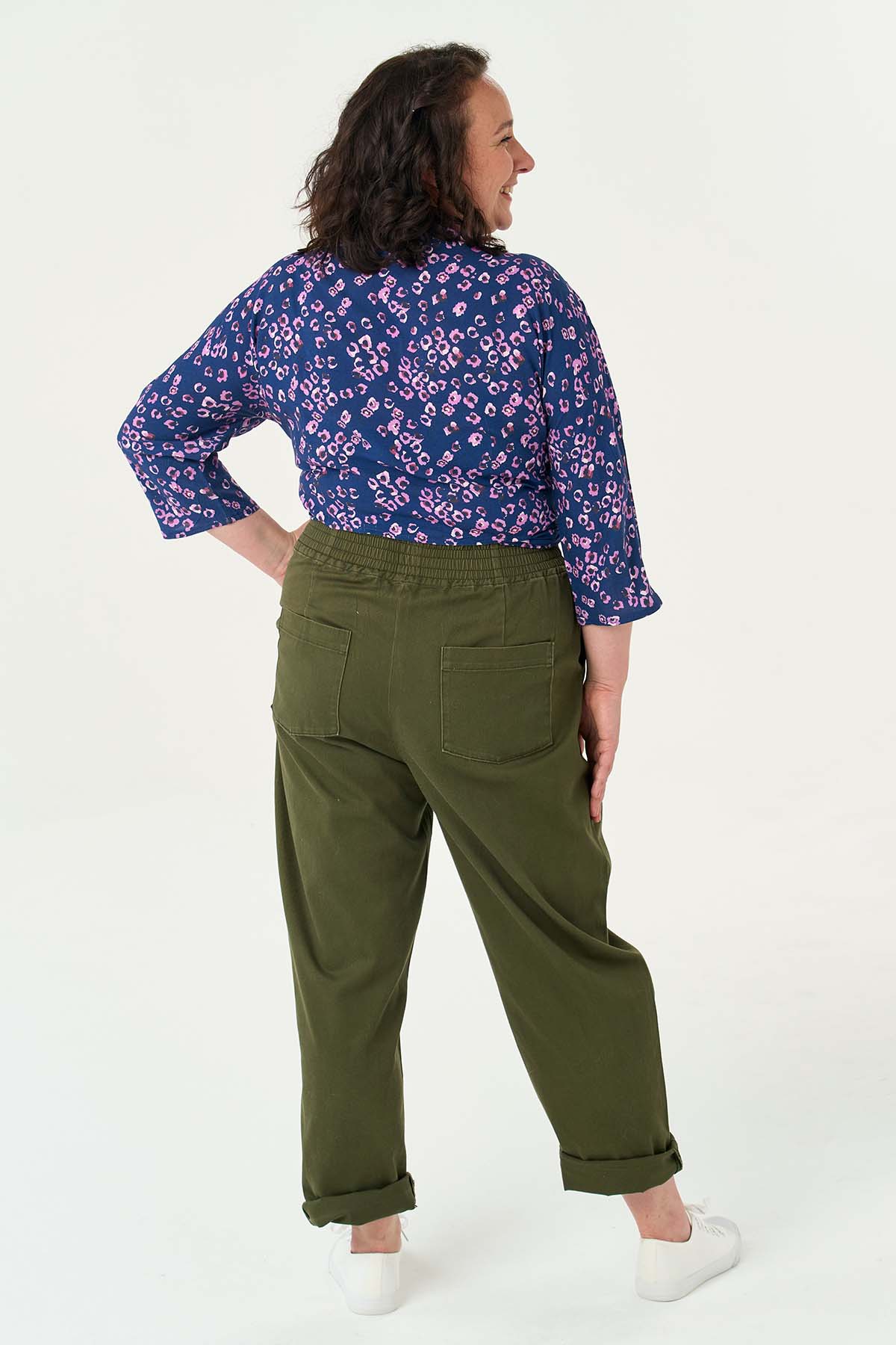 Buy the Ella Blouse sewing pattern from Sew Over It. The Ella Blouse is a pretty waist-length top that wraps across the front and secures with ties. The front edges gently pleat into the tie at the waist for a beautiful detail, and the 3/4 length grown-on sleeves are nice and easy to sew. On the inside, the blouse is neatly finished with facings. This is the perfect project for beginner, intermediate and advanced sewists alike – a versatile wardrobe piece that is both simple and interesting to sew.