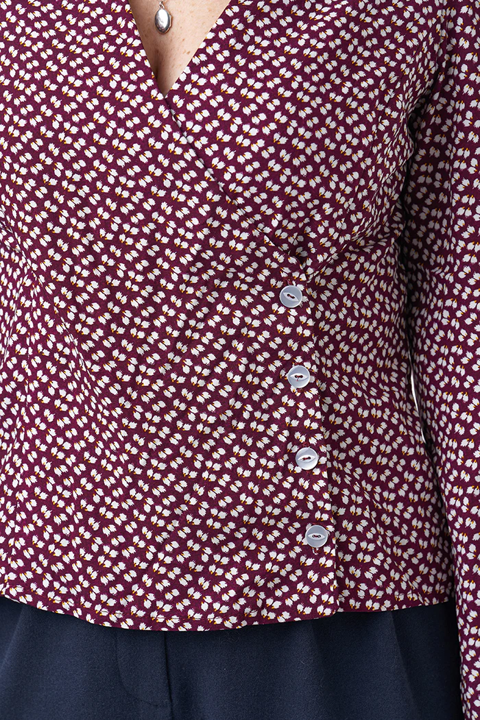 Buy the Esther Blouse sewing pattern from Sew Over It. The Esther Blouse is a gorgeous button-up wrap blouse with subtle puff shoulders and statement sleeves in two lengths. Made in woven fabric with lots of drape, Esther is super comfy, fits beautifully and is brilliantly practical. A versatile top to suit any occasion, Esther is a wardrobe essential to take you through the seasons.