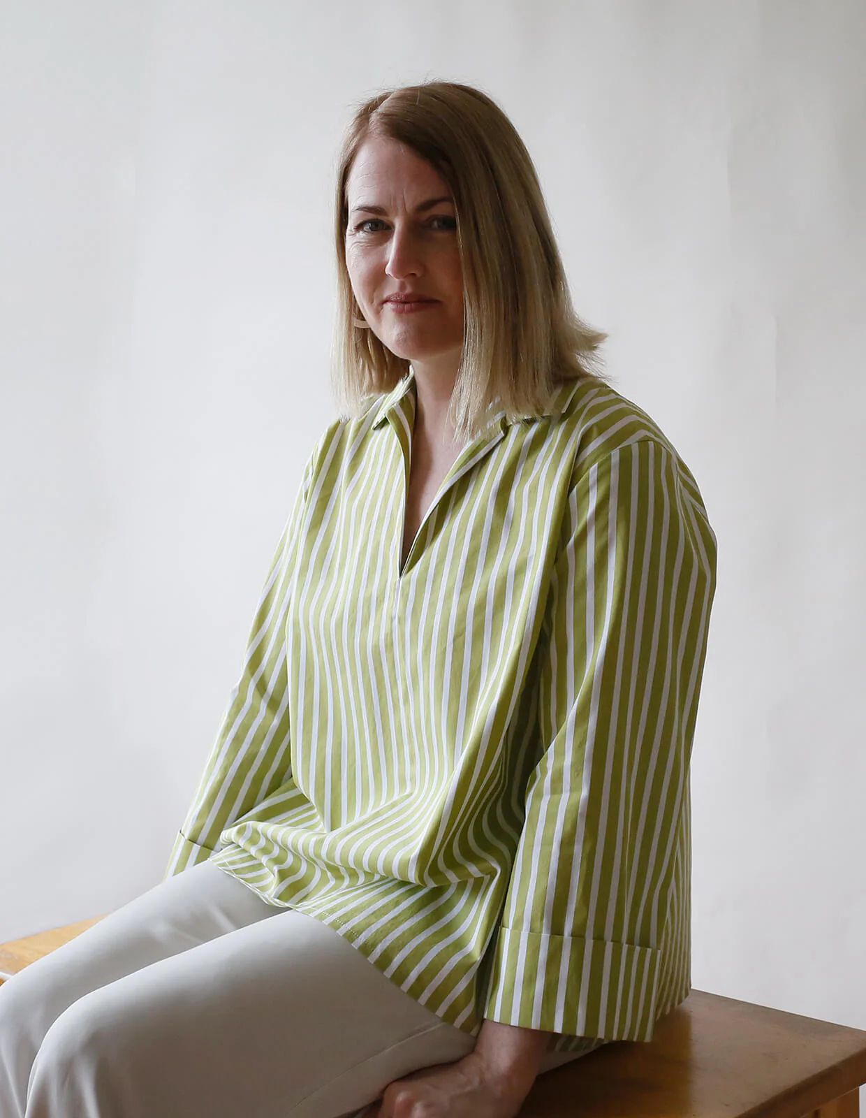 Buy the Flared Shirt sewing pattern from The Maker's Atelier. A casual, pull-on, flared shirt with or without sleeves. The sleeves are bracelet length with a turned back cuff.